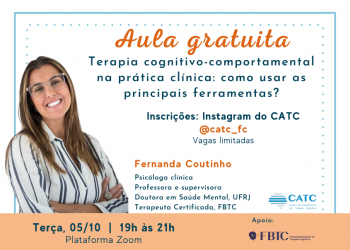 Ler MaisTerapia Cognitivo-Comportamental na prática clínica: como usar as principais ferramentas? ▪ Com: Dra. Fernanda Coutinho ▪ Realização: CATC...